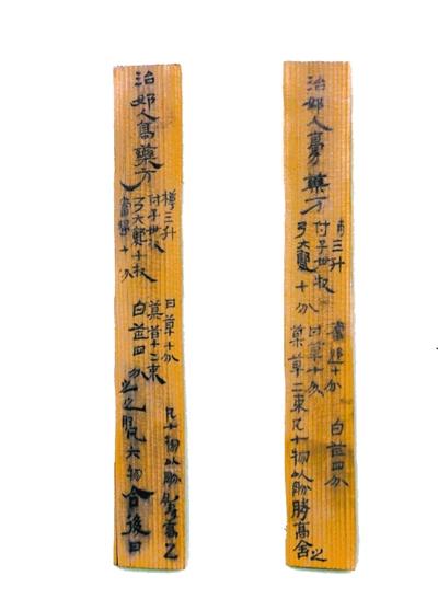 1972年11月,武威城郊柏樹鄉的農民在旱攤坡興修水利時發現了一座古墓,經考證這是座東漢早期的墓葬,墓主人是位老年醫者,這位懸壺濟世一生的老中醫真是位敬業的醫者,在他的隨葬品中人們發現了一批珍貴的醫藥簡牘。這些醫藥簡牘共計92枚,其中木簡78枚,木牘14枚。簡書內容豐富,抄錄的都是當時的驗方,保存完整和比較完整的醫藥方有30多個,涉及內科、外科、婦科、五官科、針灸科等,處方中所列藥物近百味。有些藥方還詳細記載了病名、病狀、藥物、劑量、制藥方法、服藥時間、用藥方式、針灸穴位以及注意事項等。這些簡牘應是這位老中醫多年行醫的經驗和有效方劑的真實記錄。從簡文的整個內容來看,這批“醫藥簡”充分體現了中國傳統醫學“辨證施治”的原則,并將這一原則具體運用到了臨床上;在藥物學方面,簡文中所載藥物較《神農本草經》有所發展,而且這些藥物的性能在當時已被人們掌握。