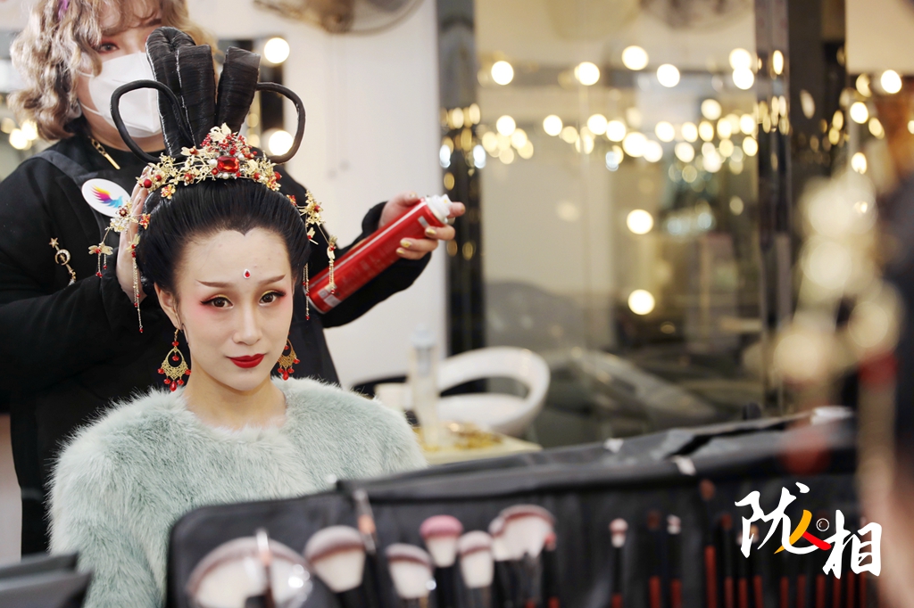 4月10日,陳婉琪做了三個多小時的造型,“因為是要參考敦煌壁畫的內容來做,所以不管是服飾還是妝容,都要一點點的調整。”