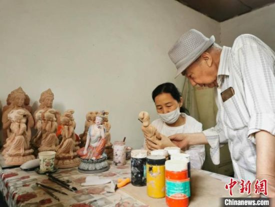 中新網蘭州9月2日電 (閆姣 馮志軍 高瑩)八旬敦煌彩塑藝人魯勤學,耗時四十余載摸索敦煌彩塑的制作工藝,他還創新“立體”壁畫,將壁畫中的佛像形象都制作成了便于游客攜帶的彩塑。“我特別想通過自己微薄的力量把家鄉推介出去,想讓大家都知道敦煌彩塑的魅力。”他說。