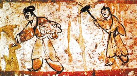 此后,在酒泉丁家閘十六國墓壁畫中就只有一牛牽引的雙轅犁了。說明魏晉時期是中國從二牛單轅犁過渡到一牛挽拉雙轅犁的時代,這一過渡的狀況及特點出現在嘉峪關地主墓葬壁畫中,又說明甘肅是這一重大農技改革的地區之一。