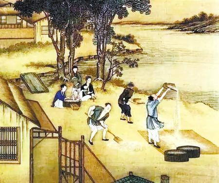 上農區田(大)法,區方深各六寸,閑(區間距)相去七寸,一畝三千七百區,丁男女種十畝,至秋收區三升粟,畝得百斛。中農區田法,方七寸,深六寸,閑相去二尺,一畝千二十七區,丁男女種十畝,秋收粟畝得五十一石。下農區田法,方九寸,深六寸,閑相去三尺,秋收畝得二十八石。旱即以水沃(澆灌)之。(《后漢書·劉般傳》)