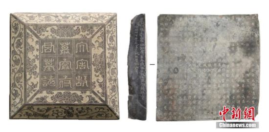 12月14日,甘肅省文物局發布該省武威地區唐代吐谷渾王族墓葬群最新考古研究成果。圖為慕容智墓墓志及志側文字。 中新社發 甘肅省文物局 供圖