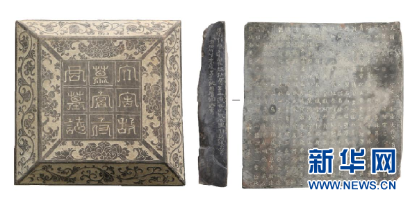 慕容智墓墓志及志側文字。(甘肅省文物考古研究所供圖)