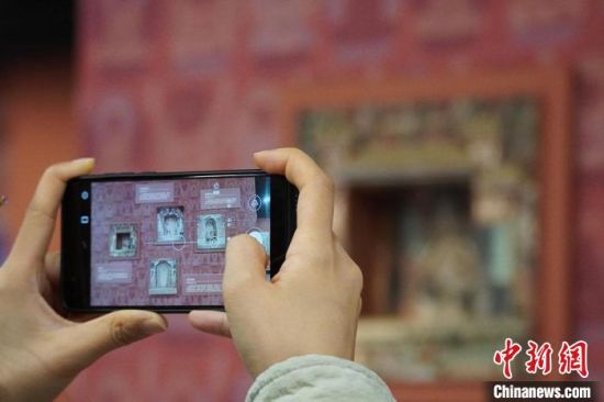圖為觀眾欣賞數字復制壁畫?!【琶赖┰?攝