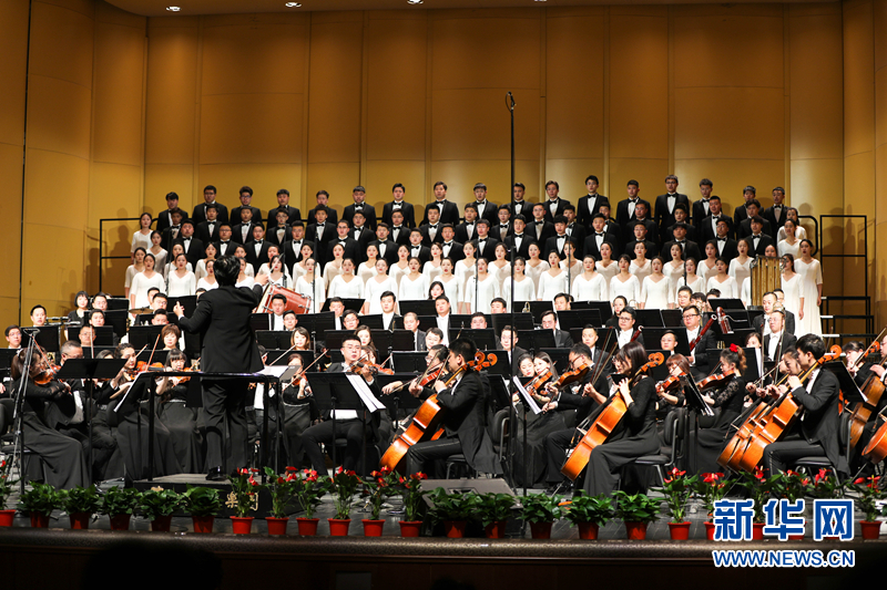 12月28日,指揮林大葉在音樂會上指揮。新華社記者 郎兵兵 攝