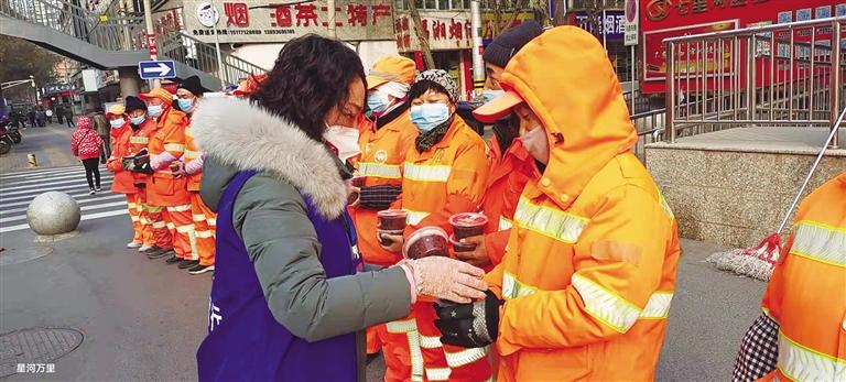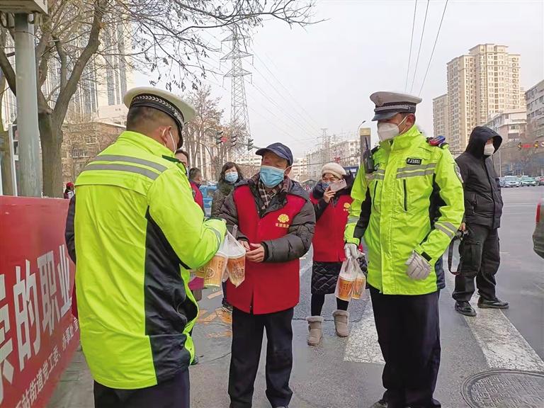 中國甘肅網1月10日訊 據蘭州晚報報道(記者 任澤昕 攝)1月8日,我市多家單位聯手開展公益活動,志愿者將1000余份臘八粥免費送給一線交警、環衛工、公交司機、出租車司機、旅客以及孤寡老人、空巢老人。