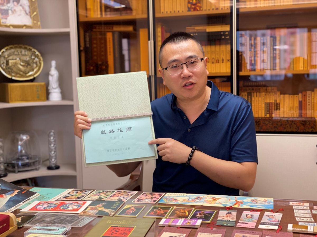 在陳曉斌的工作室,有舞劇初創劇本、編導手稿、舞美設計原稿和初始錄音,意大利演出宣傳冊、日本公演手冊、泰國演出節目單、西安電影制片廠電影臺本、年歷卡、年畫、小人書、明信片、火柴盒等藏品,這些都被他視若珍寶。