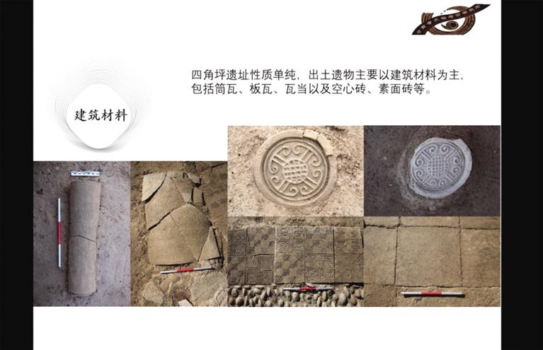 此前勘探發現,四角坪遺址外圍為夯土圍墻,中部為面積約900多平方米的方形夯土臺基,臺基頂部四周有回廊式建筑。經過兩年的發掘,摸清了夯土臺基的形制,發現了臺基中心較特殊的半地穴式建筑,以及臺基外圍第一排附屬建筑。每組建筑之間有寬約一米的夯土通道連接,建筑周圍散落各種建筑構件,如板瓦、筒瓦、瓦當、空心磚等。通過考古發掘顯示,四角坪遺址建筑體量巨大,等級分明,格局規整對稱,是秦帝國時期代表國家意志的禮制性建筑群。