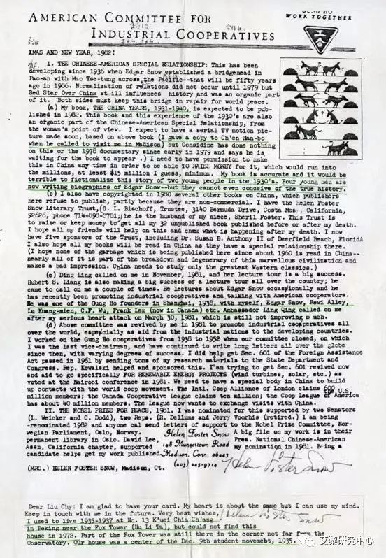 今年2月7日,國內各大媒體公布了國家主席習近平1月27日給美國海倫·福斯特·斯諾基金會主席亞當·福斯特的復信,提到“斯諾夫婦積極推動中國工合運動”、“為中國革命和建設事業做出貢獻”。