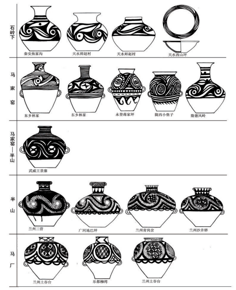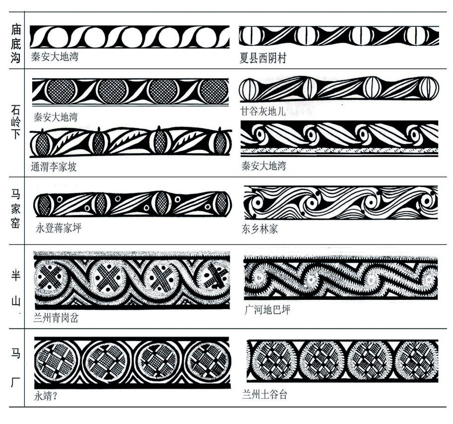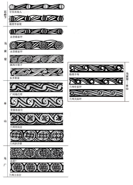 在20世紀五六十年代,在甘肅及鄰近的青海東部地區新發現大量的馬家窯文化遺址,同時也進行了一些發掘工作,為探索馬家窯文化及彩陶的來源進行了深入研究。關于馬家窯文化與仰韶文化的關系,體現在彩陶上的線索非常明確,石興邦先生就此進行了探討,他在1962年發表的一文中認為馬家窯文化彩陶受到廟底溝類型彩陶的影響,紋飾母題與演變規律都有相似之處。嚴文明先生1978年發表的《甘肅彩陶的源流》,論及半坡類型向隴東和廟底溝類型向隴西及青海東部的擴展,認為馬家窯文化彩陶的源起與中原地區的仰韶文化有關。