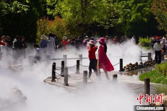 蘭州市寓言故事園化身“瑤池”仙境美景,吸引不少市民前來觀賞、拍照。 九美旦增 攝