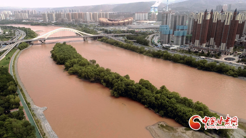 7月11日,受強降雨天氣影響,黃河蘭州段水位上漲 ,流量持續增加,從空中俯瞰,較往日河水更加寬廣壯美。