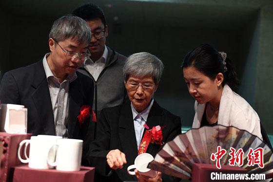 2018年8月,樊錦詩(shī)(中)在莫高窟數(shù)字陳列中心參觀文創(chuàng)產(chǎn)品。(資料圖) 楊艷敏 攝