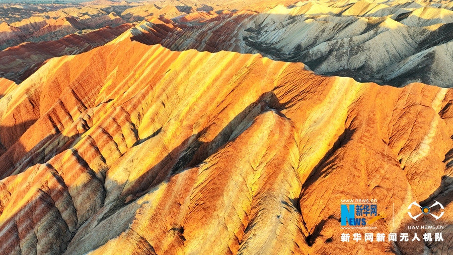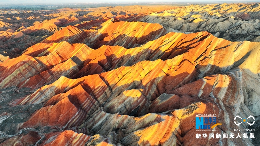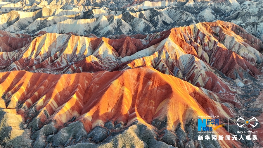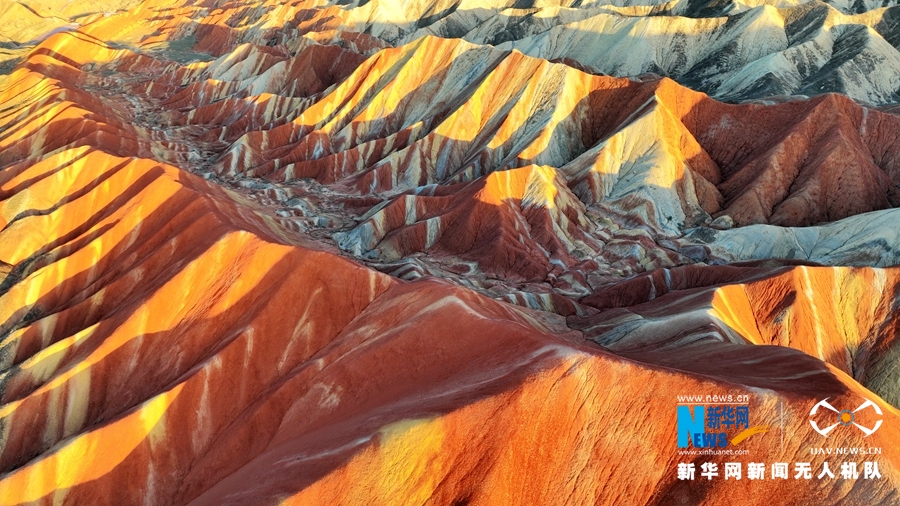夏日傍晚,在夕陽(yáng)的映照下,甘肅張掖七彩丹霞色彩艷麗、層理交錯(cuò),美不勝收。新華網(wǎng)發(fā)(成林 攝)