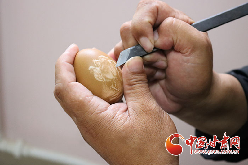 教學之外,劉財萬對傳播絲路文化同樣興趣濃厚。2018年劉財萬作為甘肅省殘聯代表之一參展絲綢之路(敦煌)國際文化博覽會,并為會上沿線城市所展示的歷史文化、民俗風情、現代文化創新成果所折服。從那之后,劉財萬開始將絲路文化融入蛋雕之中,讓蛋雕成為絲路文化歷史傳承的創新載體。