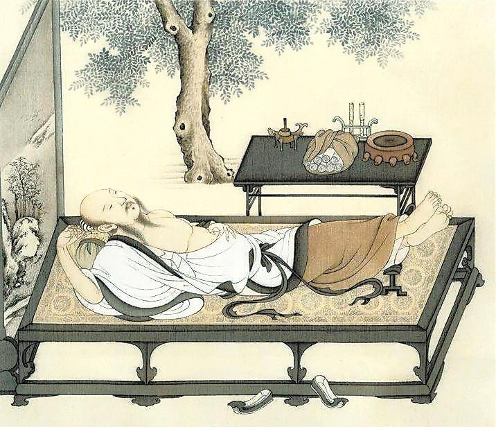 唐代的虢國夫人的“夜明枕”更為稀奇。五代王仁裕在《開元天寶遺事》中有記載:“夜明枕”,其實是一種玉石枕頭:“虢國夫人有夜明枕,設于堂中,光照一室,不假燈燭。”此外,“石膏枕”也是古人的消暑佳物,除了降溫納涼,還有解暑安神的保健功能。唐代詩人薛逢寫《石膏枕》贊頌這種神器:“表里通明不假雕,冷于春雪白于瑤。朝來送在涼床上,只怕風吹日炙銷。”