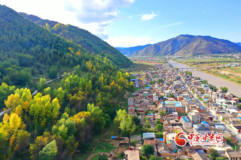 金秋時節,岷縣十里鎮秋色漸濃,山林樹木色彩斑斕,岷山洮水與民居田園相映成趣,勾勒出一幅美麗的秋日畫卷。