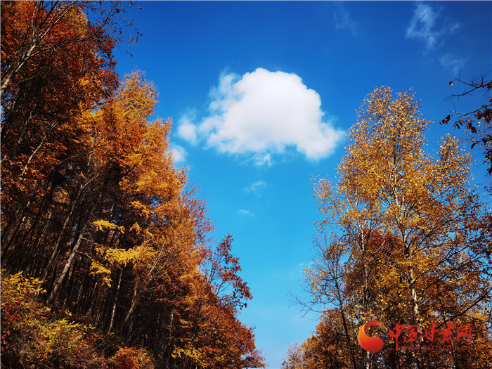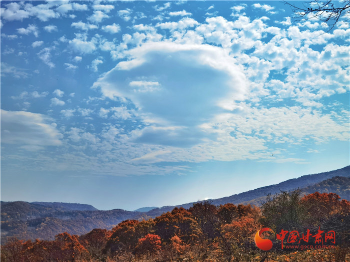關山景區層林盡染白云飄飄,秋高氣爽。