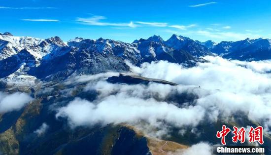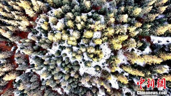 今年截至11月4日,中國東北地區(qū)大部、新疆、青海、西藏、內(nèi)蒙古、甘肅等地都已經(jīng)進入氣象意義上的冬季。圖為薄雪覆蓋山巒和林區(qū)。