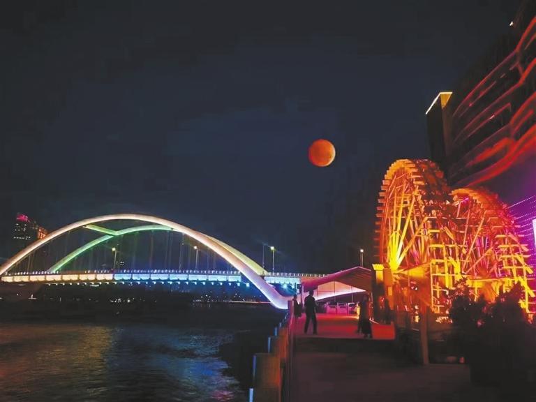 當晚,月亮成了朋友圈中當之無愧的主角,天宇上演月全食,此次月全食初虧始于17時09分,18時59分達到食甚,20時49分復圓。這次月全食有兩大特點:我國絕大部分地區都可以看到全食的“紅月亮”階段;全食階段月球會遮掩太陽系八大行星之一的天王星。據了解,天王星與“紅月亮”下一次相遇,將發生在4344年8月8日,可謂“一生只能見一次”。