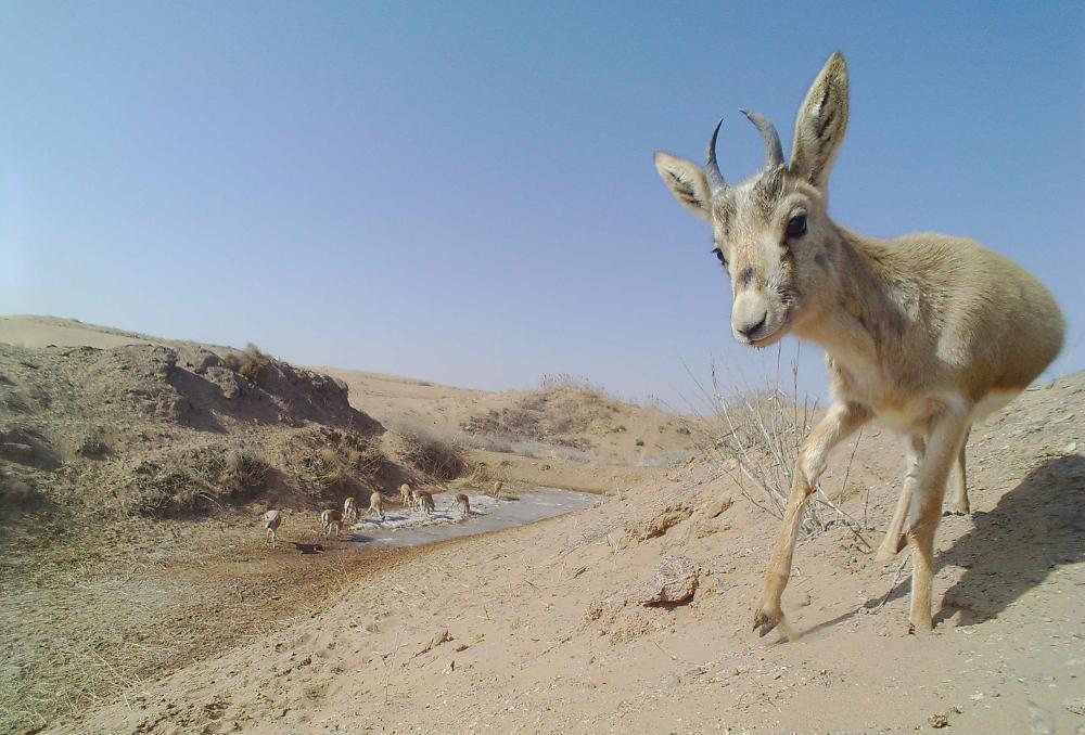 原標題:甘肅民勤連古城國家級自然保護區內頻現成群鵝喉羚