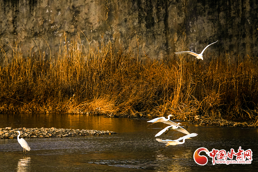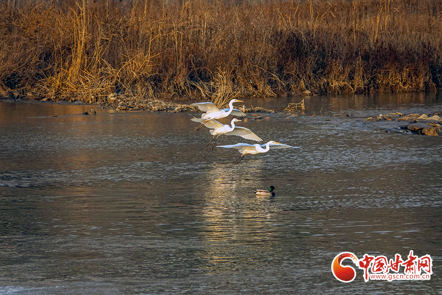 冬日暖陽下,平涼市崇信縣汭水河畔,波光與白鷺互為輝映,勾勒出一幅人與自然和諧相處的生態(tài)畫卷。