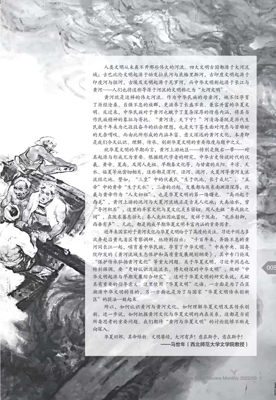 “黃河與華夏文明”系列文章(共9篇),由《博覽群書》編輯部邀約西北師范大學文學院馬世年、杜志強等著名專家策劃、組稿,作者有馬世年、杜志強、張景平、延娟芹、張存良、黑金福、劉陽杰、蘭蓓蓓等,分別刊發于《博覽群書》2022年3期、9期。系列文章著眼黃河文化,呼應中央關于研究黃河文化的號召,探討華夏文明在黃河流域的發展、發生與傳承、創新;同時,欄目通過精準立意、深入考證和生動表達,卓有成效地推介和普及了黃河文化,深化了國人對黃河文化的認識。已經探討的相關論題有:歷史上關于黃河起源的爭議,黃河文化的內涵,先周文化,秦早期文化,民族文化,西王母文化,絲路文化等。據《博覽群書》雜志介紹,鑒于這一主題的人文價值和巨大影響,編輯部將和學界更加密切配合,加強相關欄目,講好學術故事,推動黃河文化研究形成新局面和新氣象。