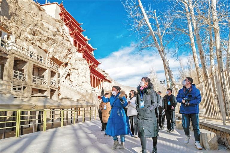 新年伊始,敦煌市舉行了“2022年-2023年冬春旅游優惠政策發布暨敦煌文化研學季”活動啟動儀式,莫高窟推出門票半價、開放洞窟由8個增至12個并配資深講解員講解,多項優惠措施吸引了眾多游客來敦煌觀光游覽。