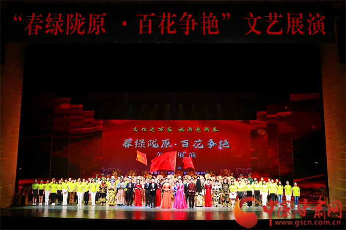 此次文藝展演是近兩年來全省規模最大、演職人員人數最多的一場演出,分為“春之韻”“花之美”兩個篇章,涵蓋了歌舞、雜技、相聲、器樂演奏、詩朗誦等多種藝術形式。來自省歌劇院、省隴劇院、省民族歌舞團、省歌舞劇院、省京劇團、省雜技團、省話劇院、蘭州大劇院、蘭州歌舞劇院、蘭州戲曲劇院等省市文藝院團,以及省非遺保護中心、省文化館、秦安縣文化館、蘭州德藝坊的藝術家們輪番上陣,帶來開場舞《隴原兒女齊祝福》、雜技《生命禮贊——高拐》、藏族舞蹈《吉祥歡歌》、相聲《大美甘肅》、民族器樂《勝境妙音》、舞蹈《遇見敦煌》、詩朗誦《詩與遠方的交響》等精心創排的節目,甘肅畫院的書畫藝術家們現場揮毫潑墨,展示了翰墨丹青的無窮魅力。值得一提的是,甘肅非遺傳承人也登上舞臺,現場展示了隴東剪紙藝術和秦安小曲的文化之美、技藝之美、傳承之美。尤其是省直文旅系統青年干部攜手并肩、熱情合唱歌曲《青春正揚帆》,讓全場觀眾心潮澎湃、熱血沸騰,展示出了甘肅文旅鐵軍昂揚奮進、砥礪前行的精神風貌。