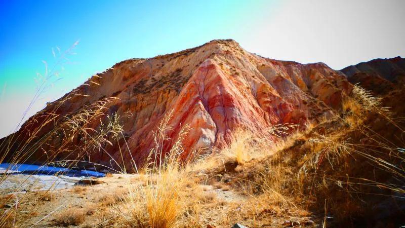 從馬營河大峽谷南端再向南一眼望去就是祁連雪山,沿著河道通過高臺縣新壩鎮的紅沙河村,向東南走進祁連山脈可見一片五顏六色的奇觀,又一個丹霞地貌在祁連山展現,可稱高臺“小泉丹霞〞。據說這個“丹霞”還沒有媒體“曝過光〞。