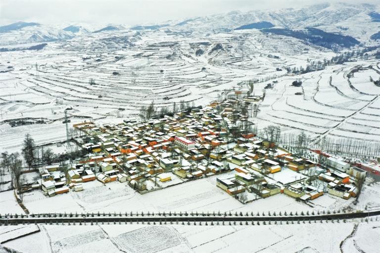 在定西市岷縣境內拍攝的春日雪景。 新華社照片