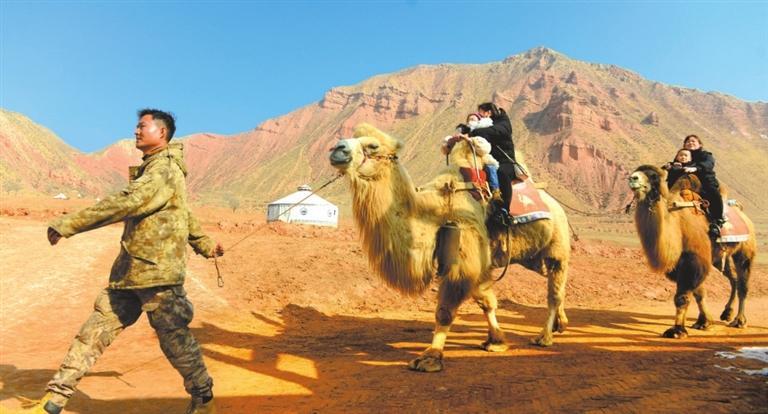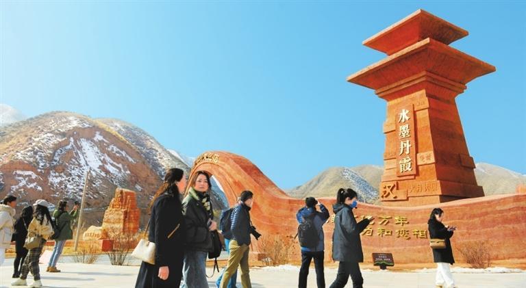 2月26日,蘭州水墨丹霞在陽光照耀下斑斕多姿,美不勝收。景區獨特的“春之美”,引得眾多游客和攝影愛好者追逐至此。 蘭州水墨丹霞旅游景區以紅山灣地貌為主,兼有丹霞、一線天、孤峰、崖壁、殘丘等,猶如一幅幅山水潑墨畫,游客置身其中猶如進入畫境。