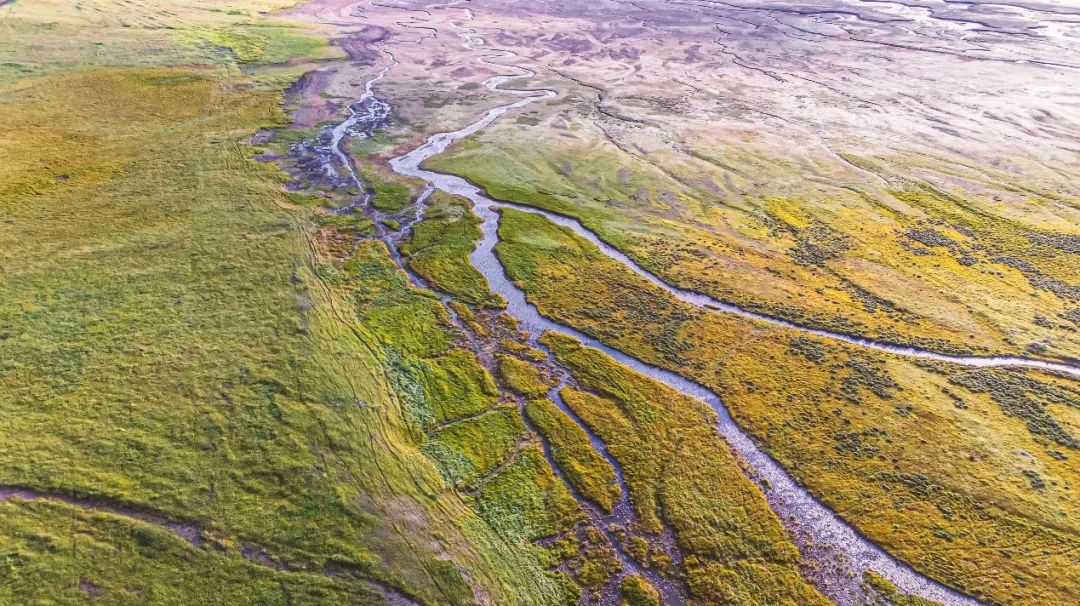祁連山下的河流穿過山谷流向沙漠,在山前形成一個又一個壯觀的沖積扇,錯雜縱橫的支流默默滋養著土地,讓隴原萌生出更多的綠意。黃河流經瑪曲,繞出180度的“九曲黃河第一彎”,海拔3400米的高原上,也有著奔騰壯闊的蜿蜒。