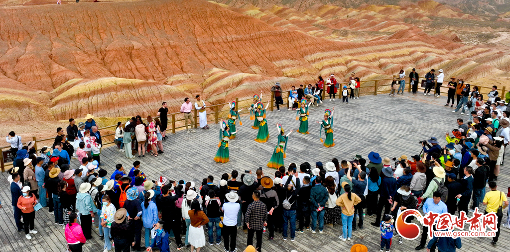 5月1日,甘肅張掖七彩丹霞旅游景區(qū)內(nèi)游人如織,來自全國各地的18000多名游客慕名前來,欣賞獨(dú)特的丹霞地貌,領(lǐng)略大自然雄奇壯觀的景色。