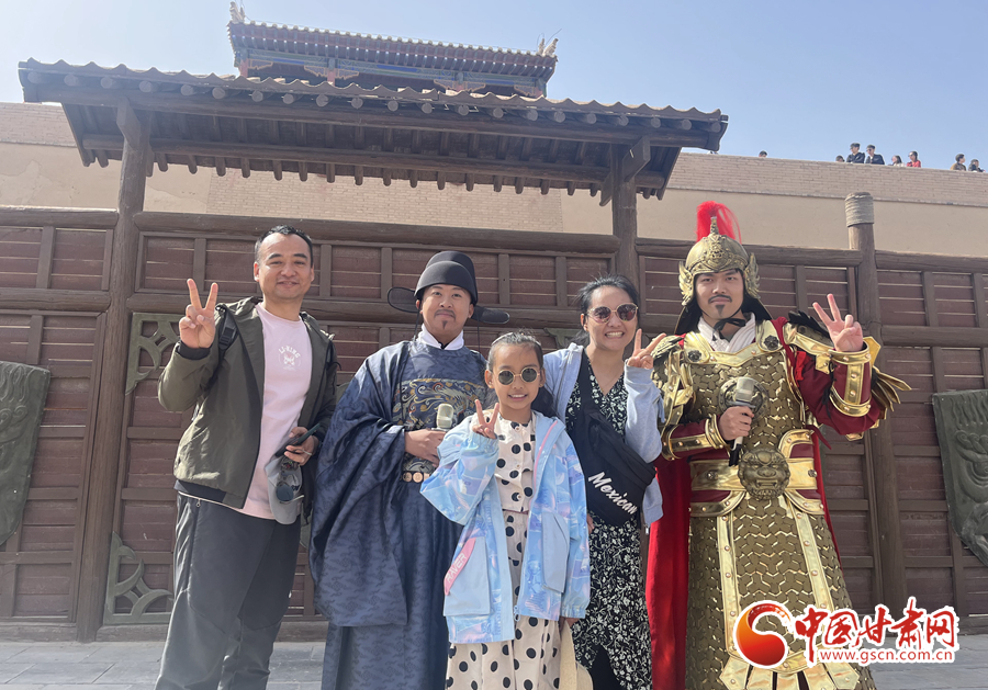 中國甘肅網5月3日訊(通訊員 陳楚)“開城,迎賓。”5月1日上午,在嘉峪關關城景區,隨著號角聲響起,兩名門衛士兵緩緩打開城門,來自全國各地的游客,隨著守門將軍的步伐,誓師出征,游客們置身歷史氛圍,仿佛回到古時的大漠邊關。