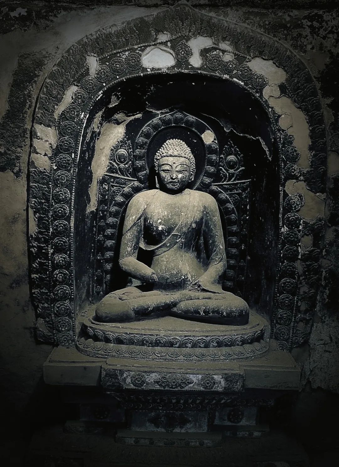 從題材上看,以單尊佛、菩薩、力士等為主,風格上更具有寫實性。造像面相橢圓飽滿,斜眉吊目,懸鼻小口,表情森嚴、凝重,服飾簡潔、質樸,寬博厚重,極富質感。其中佛低平螺髻,前置肉髻珠,身穿垂領袈裟。菩薩束發高髻或戴風帽,眉目慈祥,身材比例協調、準確。力士表情生動傳神,體形孔武雄健,充滿陽剛之氣,給人以強烈的力量和威武感;這段時間造像前衰后盛也與當時秦州所處環境有密切關系。