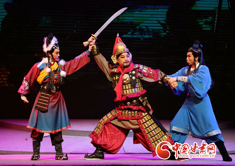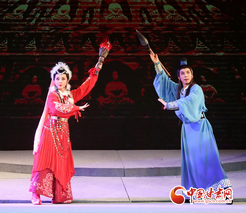 隴劇《敦煌》以回鶻族公主格麗莎的命運軌跡為結構框架和發展脈絡,描繪了一幅炎黃子孫在血與火的洗禮中,保護中華民族文化的宏偉畫卷,充分詮釋了敦煌文化“美人之美”“美美與共”的開放胸襟,“止戈為武”“協和萬邦”的和平思想,“和為貴”“和而不同”的東方智慧以及“自強不息”的奮斗精神、“舍生取義”犧牲精神。