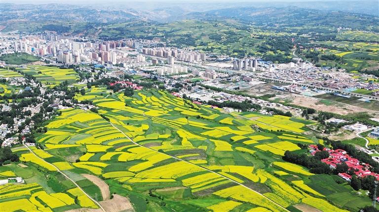 積石山縣山鄉(xiāng)油菜花迎來盛花期。金色的油菜花鑲嵌在田野里,把和美鄉(xiāng)村裝扮得格外美麗。 記者 史有東 攝
