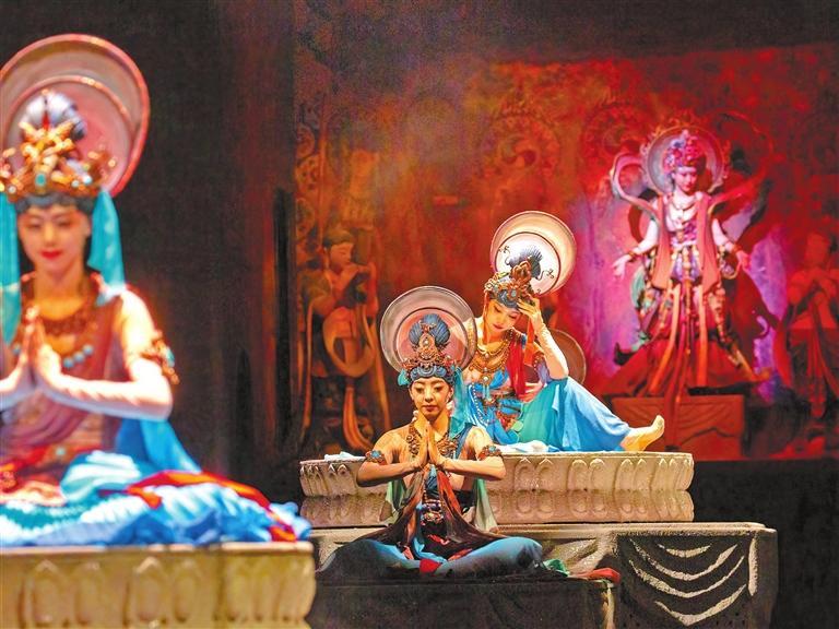敦煌,這座取之不盡用之不竭的藝術富礦,這一“頂流”的文化IP,已成為我省旅游演藝創作的發端。廣大文藝工作者深入挖掘敦煌文化,不斷豐富敦煌旅游演藝市場,以藝術的形式展示“一帶一路”開放、包容、合作、共贏的精神,在創新傳承中展現文化自信。
