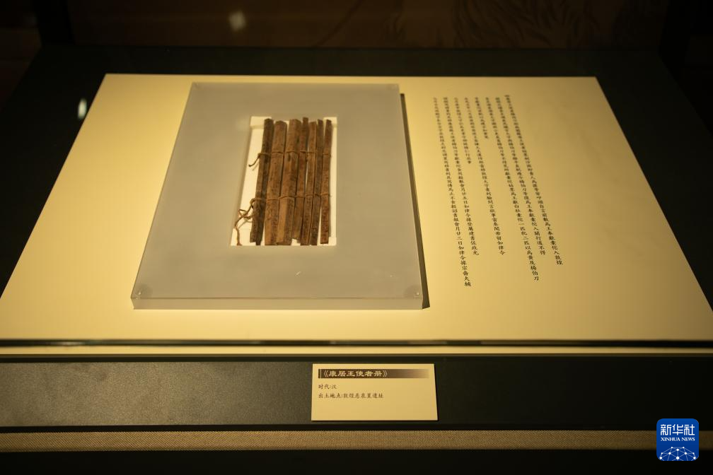這是9月7日拍攝的甘肅簡(jiǎn)牘博物館展廳內(nèi)的“康居王使者冊(cè)”。新華社記者 郎兵兵 攝