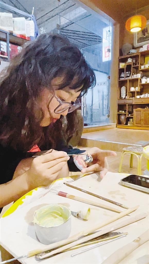 設計一款彰顯個性的咖啡杯,親手通過拉坯、捏塑、雕鏤、黏接、燒制、繪畫等環節,把它制成一件陶瓷制品,是“00后”蘭州女孩白玉卓最喜歡、也最享受的事。她說,這些環節仿佛在給一團陶土賦予生命。