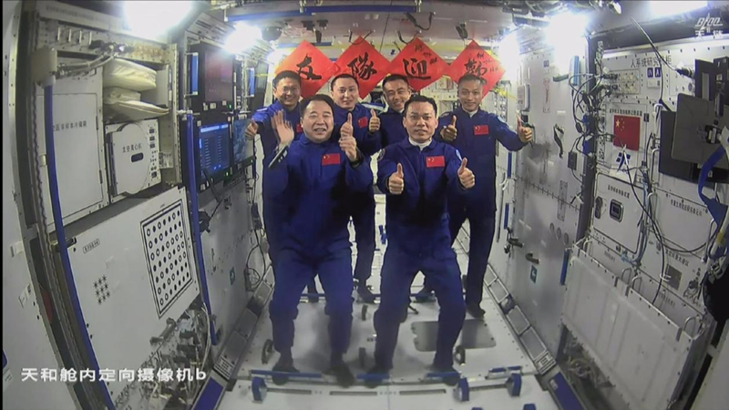 (2)三期并列:神舟17號與神舟16號兩個乘組會合,實現了我國三批航天員在空間站的首次大團圓。