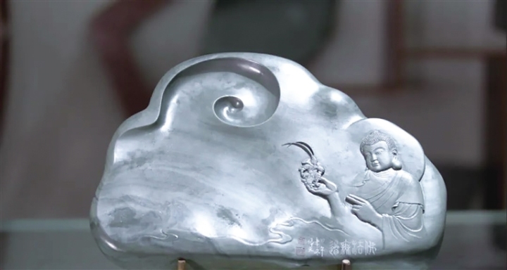 政策支持、資金投入、行業協會與合作組織的建立讓洮硯產業在瓜州穩穩扎下了根。在這片全新的文化土壤上,碧綠如藍的洮硯石汲取靈感,雕刻者以“一帶一路”為主題,以敦煌壁畫和瓜州張芝、玄奘、石窟、邊關等元素為題材,將絲路文化和洮硯制作技藝融合,打造出富有地域特色的文化旅游藝術產品。