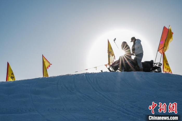 2024年1月7日,游人在敦煌文博冰雪場(chǎng)體驗(yàn)雪地游玩項(xiàng)目。王斌銀 攝