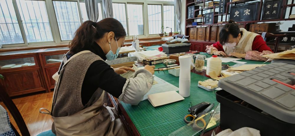 姚嘉迪和同事們正在修復古籍。新華社記者 文靜 攝