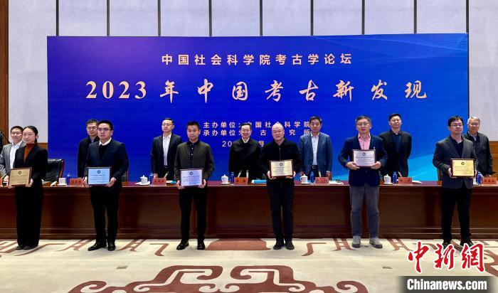 2023年中國考古新發(fā)現(xiàn)入選項(xiàng)目獲頒獎(jiǎng)牌。中新網(wǎng)記者 孫自法 攝