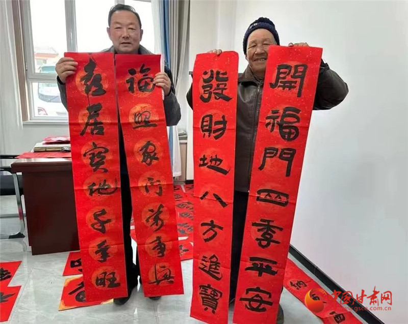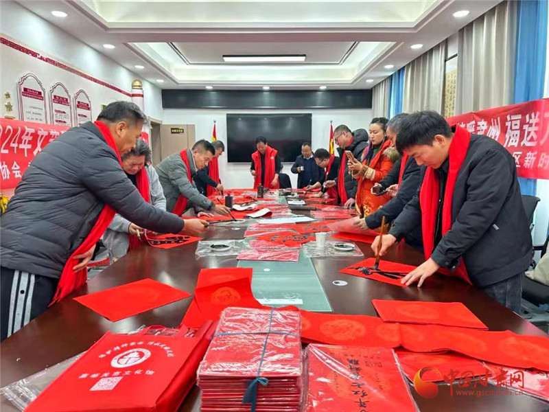 中國甘肅網2月4日訊(西北角·中國甘肅網記者 宋芳科 通訊員 李娜)近日,酒泉市文聯“強基工程”暨“我們的中國夢 文化進萬家”春節慰問走基層活動走進肅州區金泉路社區、東洞鎮、奧凱種子機械股份有限公司等地,引導廣大文藝工作者,立足中華民族傳統文化,圍繞春節歡樂喜慶氛圍,寫春聯、送福字、拍全家福、唱大戲,通過人民群眾喜聞樂見的藝術形式,將美好祝福送到千家萬戶。