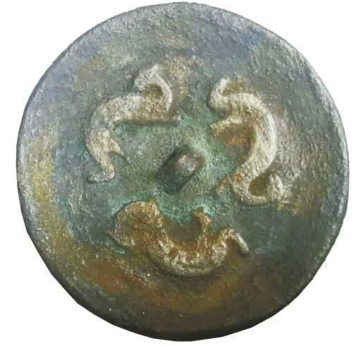 1981年出土于金川三角城遺址西崗墓群,為國家一級(jí)文物。直徑5厘米,鏡面上模鑄三條軀體蜿蜒的對(duì)稱龍紋,三龍首尾相接,環(huán)繞鏡鈕一周,展現(xiàn)了春秋戰(zhàn)國時(shí)期金昌先民杰出的青銅鑄造工藝以及非凡想象力,現(xiàn)為金昌市博物館館標(biāo)。該文物是沙井文化青銅器的杰出代表,洋溢著濃郁的草原青銅文化特色,是中西方文化交流的典型物證。