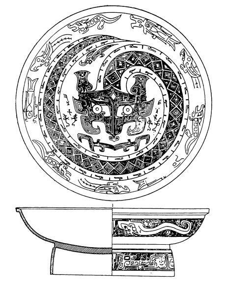 河南婦好墓出土婦好盤,口徑約36厘米,重5.9千克。腹外壁飾連續帶狀夔紋,足外壁飾連續帶狀饕餮紋,盤內壁以蟠龍為主紋,龍頭位于盤心,頭下配一夔紋,頭兩側分別鑄“婦好”銘文,蟠龍外圍飾一圈獸形紋,裝飾非常華麗。