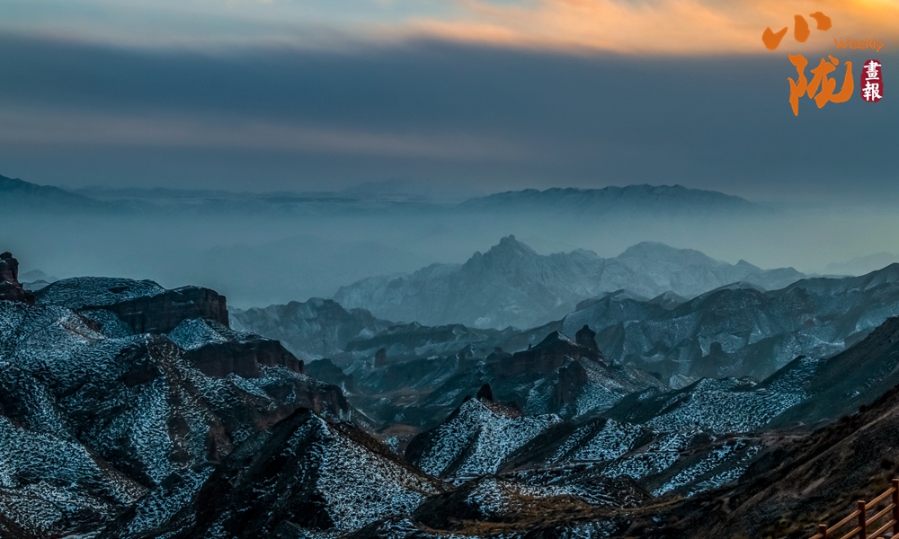 白雪輕輕地覆蓋在時隱時現的斑斕地貌上,丹霞上空云霧繚繞,置身其中仿佛走進了夢幻般的世界。